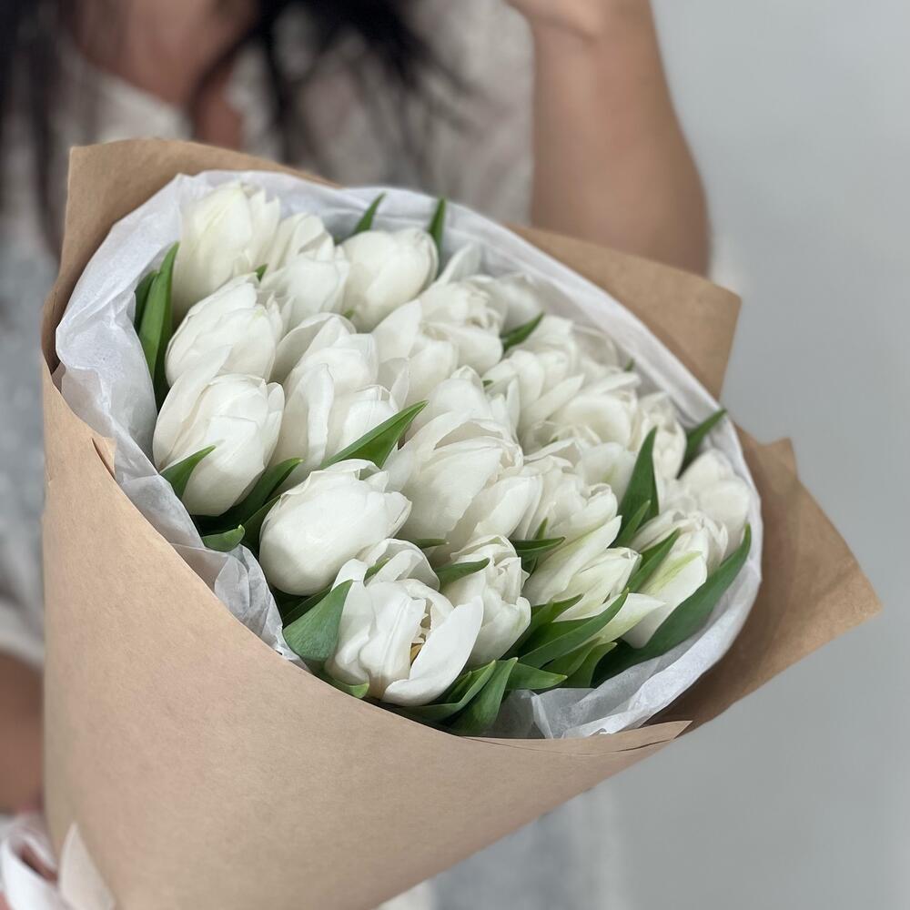 Лента - 2 шт.Упаковка - 2 шт.пионовидные тюльпаны белые - 25 шт.